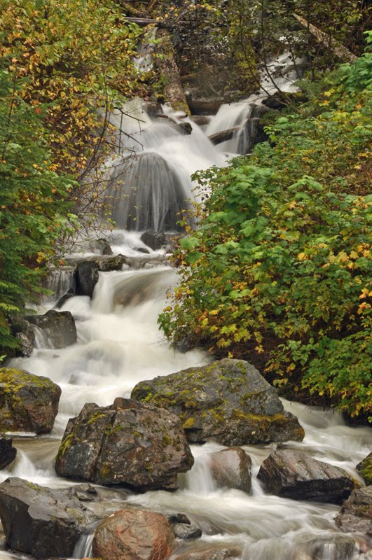 Now for the fun part. Two weeks ago when we came through Newhalem, I took a few pictures. When I looked back at them versus this past weekend's shots, I could clearly see the change in colors in the foliage. Can you?